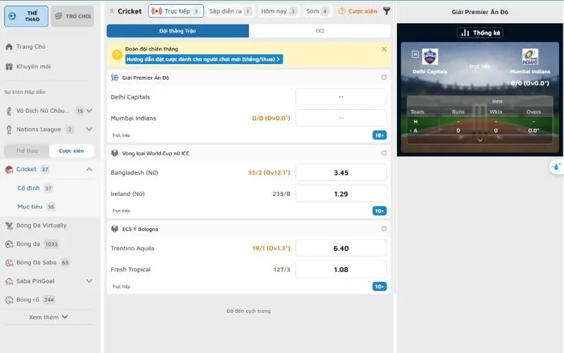 • Tính năng cược thông minh: cược nhanh, cược nhiều trận cùng lúc hoặc cược trực tiếp theo diễn biến trận đấu.